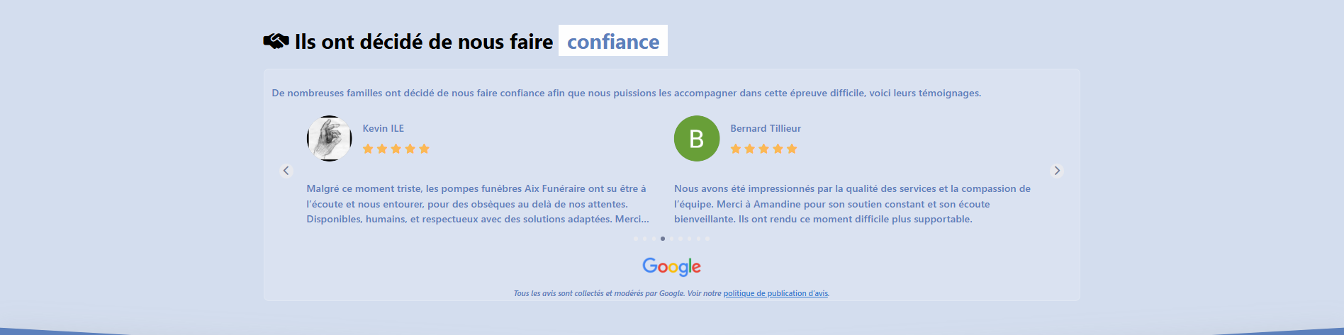 Malgré ce moment triste, les pompes funèbres Aix Funéraire ont su être à l’écoute et nous entourer, pour des obsèques au delà de nos attentes. Disponibles, humains, et respectueux avec des solutions adaptées. Merci infiniment à l’équipe surtout Amandine et Agnès.